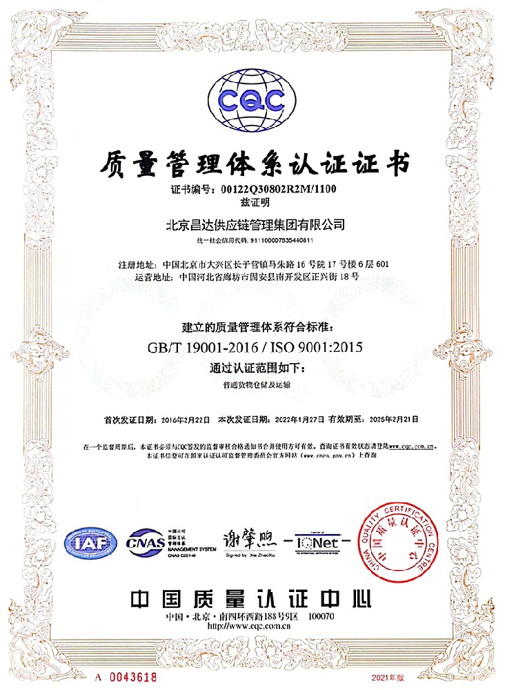 昌達集團深耕出版行業,通過了國家ISO9001和ISO2000質量服務體系認證,自主研發的信息系統獲得計算機軟件著作權等級證書和安全認證。憑借優質服務,系中國物流百強企業,國家雙5A級綜合物流企業,全國倉儲百強企業第12名,交通運輸行業誠信企業,中國城市物流配送誠信企業等眾多榮譽。