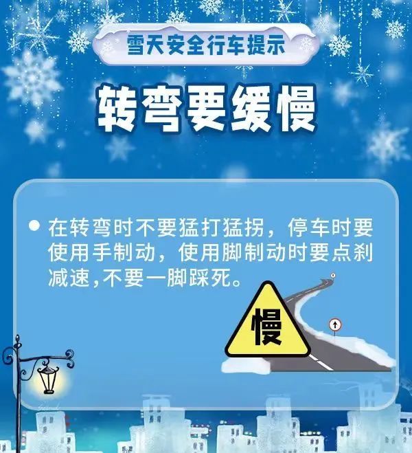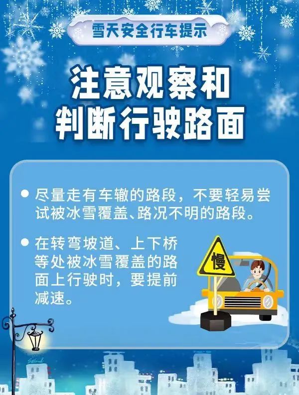 溫馨提示:氣溫變化及時增添衣物,強降溫和低溫天氣將導致感冒、哮喘等呼吸系統疾病和心腦血管疾病發病風險升高注意御寒,積雪路面駕車時,務必減速慢行,加大前方車距,減少不必要的并線、超車,避免急剎車和急轉彎,確保行車安全。