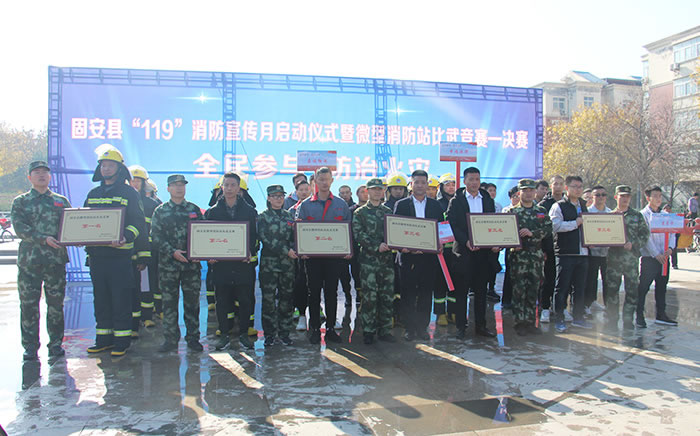 昌達消防隊馬隊長2018年11月9日,固安縣消防大隊在人民廣場隆重舉行了“固安縣微型消防站比武競賽”活動,來自固安各重點單位的12支微型消防站代表隊參加了激烈角逐。本次比賽設置了原地著消防防護服佩戴空氣呼吸器操,一人兩盤水帶連接操,負重100米跑,6樓負重登樓操,水罐消防車單干線出兩支水槍操,共5個科目。