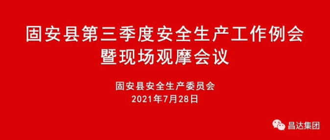 7月28日,“固安縣第三季度安全生產(chǎn)工作例會暨現(xiàn)場觀摩會議”在昌達(dá)集團(tuán)圓滿舉行。固安縣委副書記、縣長馮斌,縣委常委、副縣長張淼,各鄉(xiāng)(鎮(zhèn))人民政府,京南.固安高新區(qū)各園管委會,縣安委會相關(guān)成員單位主要負(fù)責(zé)人參加會議。