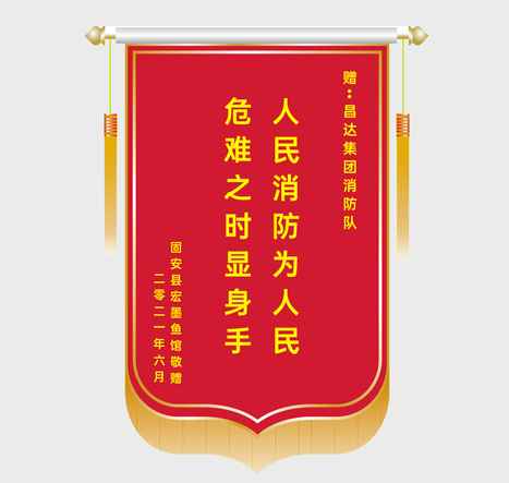 昌達集團收到固安縣宏墨魚館贈與的《人民消防為人民,危難之時顯身手》錦旗