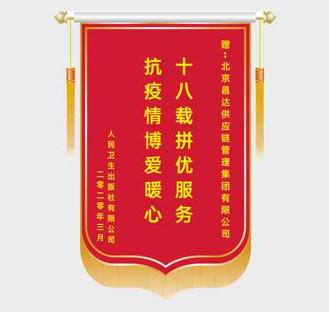 昌達集團收到人民衛生出版社有限公司贈與的《十八載拼優服務,抗疫情博愛暖心》錦旗